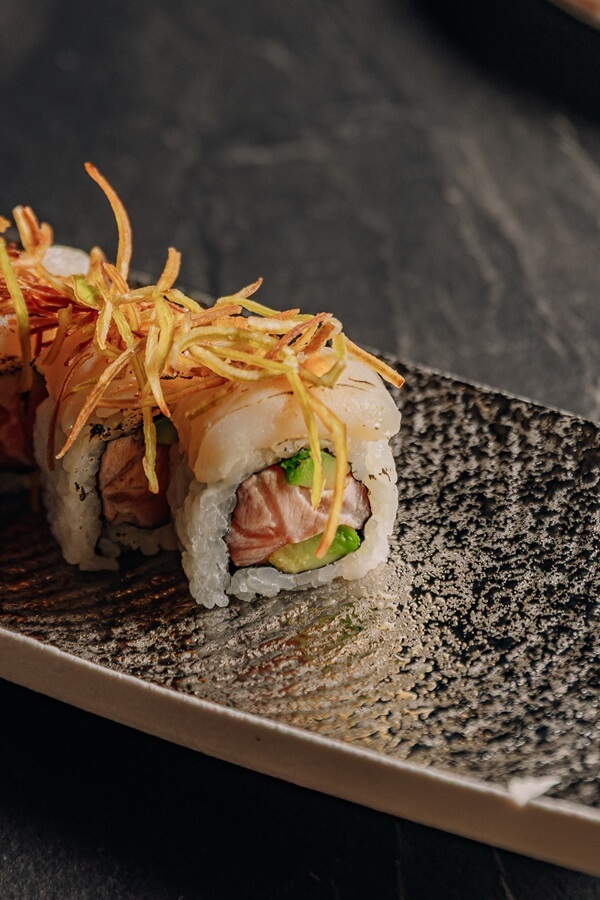 The menu focuses on sushi and raw Japanese specialities, with a selection that evolves daily. Guests can choose from carpaccio, gyoza, sashimi, tartare, nigiri, uramaki and temaki, with the wagyu roll emerging as a standout. The quality ingredients, meticulous presentation and stunning mise en place make every dish a feast for the eyes, bursting with beauty and colour. The wine list features around forty labels, with an emphasis on whites and sparkling wines. Meanwhile, the sake selection – curated by sake sommelier Roger Acosta – is thoughtfully organised into three categories: Umami, Aroma and Harmony.