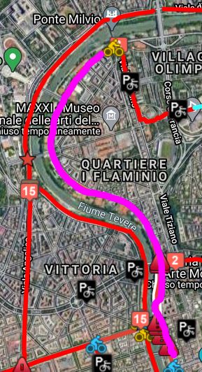 Comunque si arriva a Ponte Milvio tirando un sospiro di sollievo, ed è un peccato perché anche qui c'è un altro crocevia ciclabile importante, con la Dorsale Tevere (01) appena passato il ponte e la Dorsale Aniene che inizia con il tratto su viale Tiziano.