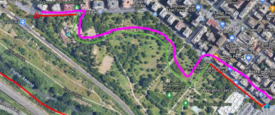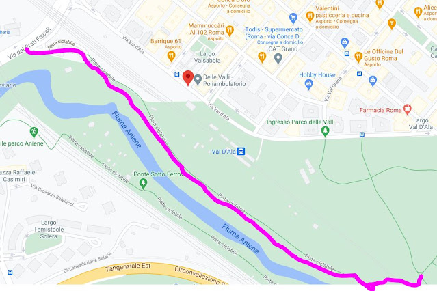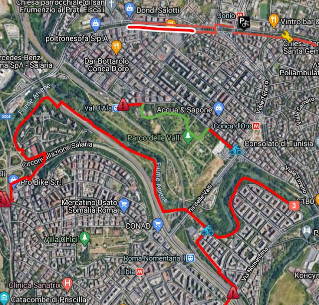 Oltretutto è abbastanza trafficato, gente che passeggia, che corre, bambini che giocano, ed è giusto che sia così e che ci passi chi vuole passeggiare in bici, non chi vuole usarla quotidianamente e magari vorrebbe raggiungere la stazione metro B1 Conca d'Oro o (quando sarà di nuovo aperta) la stazione FS Val d'Ala o i Prati Fiscali.