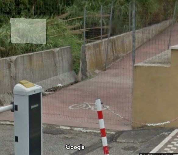 Qui sotto ancora un'immagine datata (agosto 2012) che mostra la bici disegnata all'ingresso del tratto ciclabile.