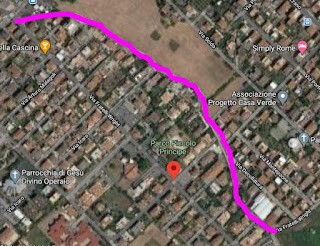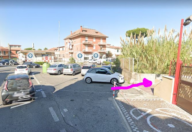 L'uscita è sempre su via Fratelli Wright ma all'altezza di via di Morena, qui sotto una immagine recente.