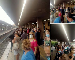 Un treno ogni 18 minuti circa e non c'è distanziamento.