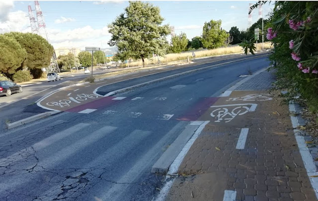 ).Purtroppo, come al solito, è stato scelto di effettuare l'attraversamento con un lungo giro ed attraversamenti tutt'altro che sicuri, peraltro accettabili per chi sta effettuando una passeggiata, ma assolutamente faticosi per chi usa la bici quotidianamente per i propri spostamenti.