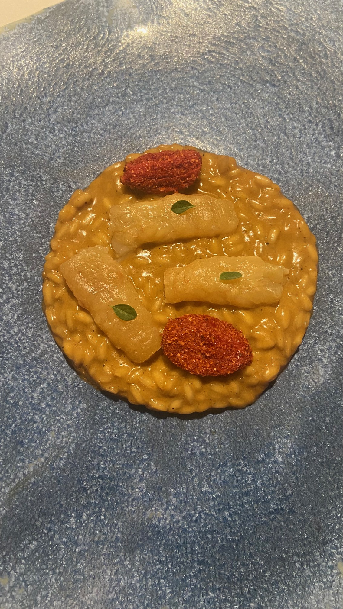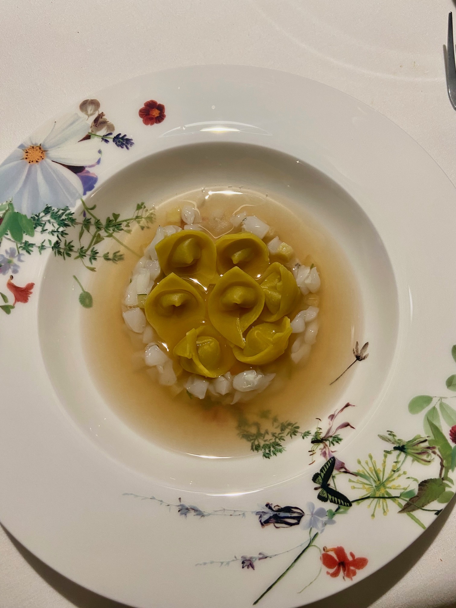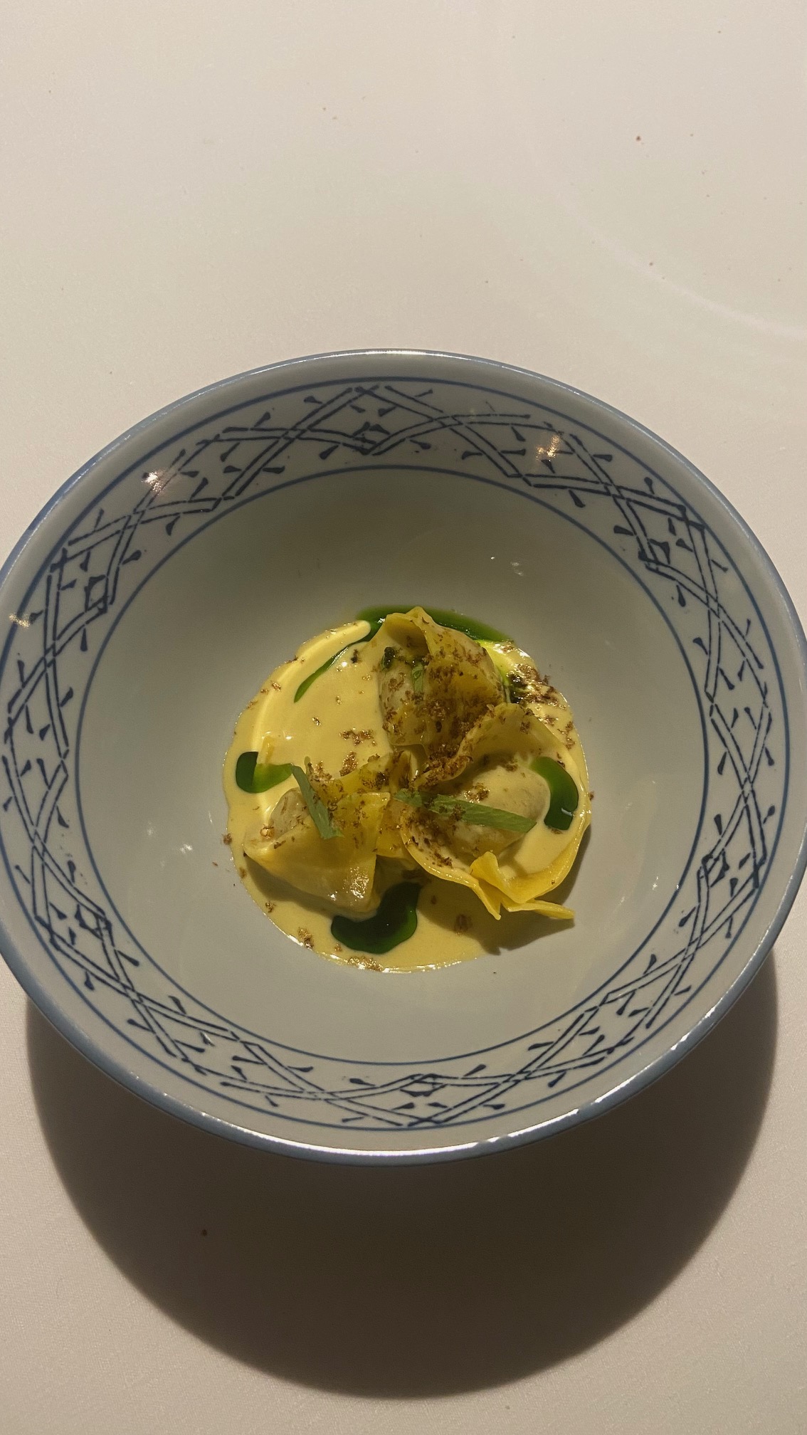 La pasta ripiena è un mezzo storicamente utilizzato da Lele Usai per comporre audaci e inediti piatti di pesce. Sapori decisi che non potevano mancare nel menù più evolutivo. Ad aprire la progressione sono i Cappelletti alla Romana “di Tonno”, dove una forte spinta di sapidità non sempre riesce a trovare la perfetta sincronia con gli altri ingredienti, mentre subito ci si accorge di come la pasta sia magnificamente tirata.
