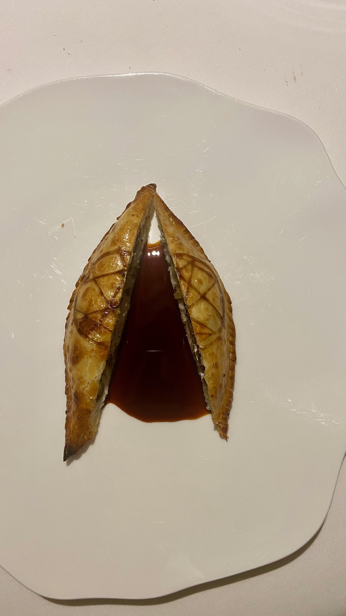 La sequenza di portate salate si completa con il Wellington di pescato (in questo caso fragolino), arricchito dal fondo bruno di lische la cui sola scarpetta meriterebbe un viaggio da lontanissime provenienze.