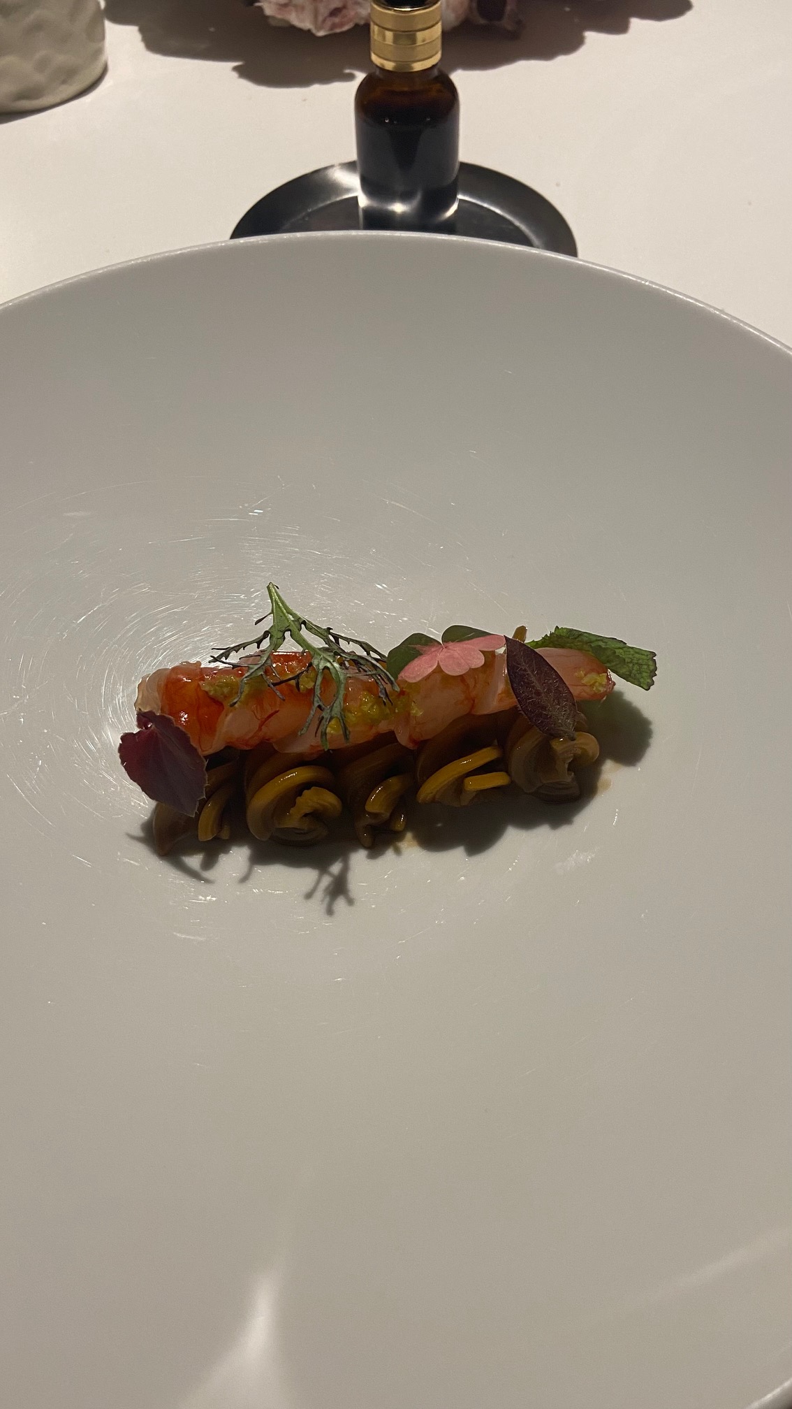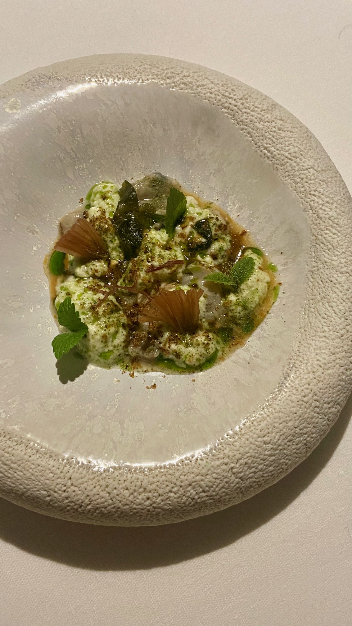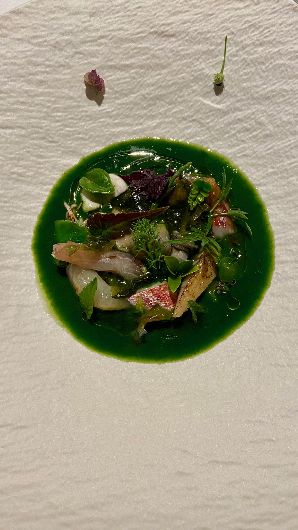 Ad aprire il percorso degustazione è “Giardino Iodato”, piatto illustre dello Chef che viene descritto magistralmente dal personale. Ci preannunciano sapori diversi per ogni boccone, non sbagliando affatto. Abbiamo avuto la stessa sensazione delle stanze di un boutique hotel che si diversificano per colori e composizioni. In questo piatto ogni assaggio racconta una parte diversa della sterminata cucina di Usai.