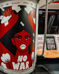 Non si tratta di una semplice operazione estetica. La metropolitana, per sua natura, è un non-luogo solo in apparenza: in realtà è uno spazio denso di vite che si incrociano, di storie che si sfiorano senza incontrarsi. Proprio per questo diventa il terreno ideale per un messaggio politico nel senso più alto del termine, capace di interrompere l’automatismo del quotidiano e di rimettere al centro una domanda scomoda: la guerra è davvero inevitabile?