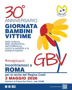 Torna il 3 maggio la Giornata Bambini Vittime, giunta alla 30ª edizione, promossa dall’Associazione Meter per difendere i minori da ogni forma di abuso e sfruttamento, con il tema “Mai più soli”. Un traguardo storico: trent’anni di impegno per l’infanzia Il 3 maggio 2026, Piazza San Pietro a Roma ospiterà la 30ª edizione della Giornata…